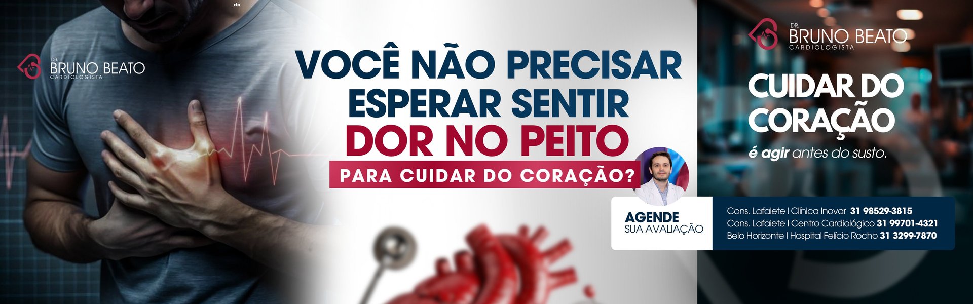 Dr. Bruno Beato é Médico Cardiologista especialista em Arritmias Cardíacas, oferecendo consultas, check-ups e tratamentos em Belo Horizonte e Conselheiro Lafaiete. Faça seu acompanhamento cardiológico contínuo para mais qualidade de vida.